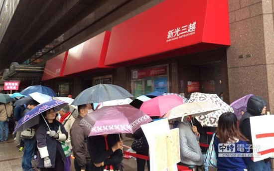 臺灣民眾排隊搶購羽絨服。(圖片來源:臺灣《中時電子報》)