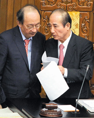 王建煊也在會中嚴詞痛批“國會”沒效率,兩岸服務貿易協議這么重要的事,竟然在“立法院”放了四、五個月還沒辦法審查,“我們的國會是腐敗的民主,再這樣下去,臺灣會變成貧民窟!”