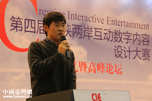 趣游科技集團海外合作中心總監吳曉寶在會上發言。(中國臺灣網 劉承思 攝)