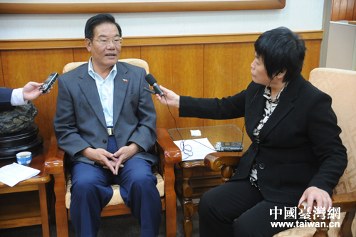 記者采訪澎湖縣長(zhǎng)王乾發(fā)。(李建偉 攝)