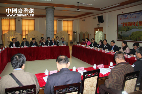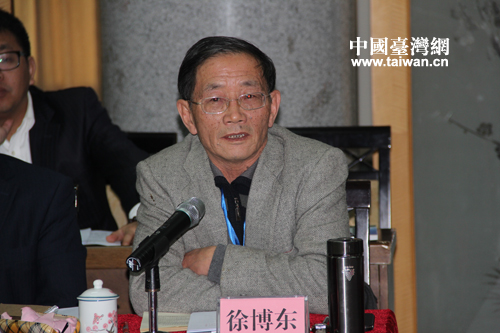 蕉嶺籍的著名臺灣問題專家徐博東在座談會發言(中國臺灣網 蕪同 攝)