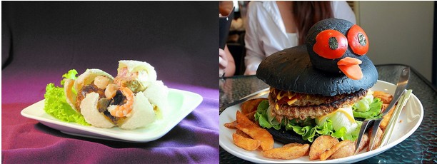 “進(jìn)擊的美食”其中兩道巨無(wú)霸海鮮肉圓(左)、姜母鴨漢堡(右)。(圖片來(lái)自臺(tái)媒)
