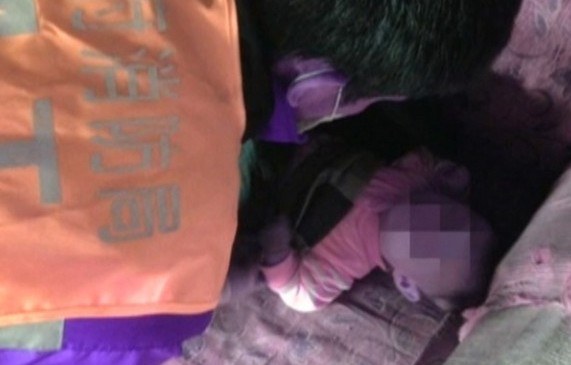 女嬰被警消發(fā)現(xiàn)時,冷到狂發(fā)抖。(臺媒圖)
