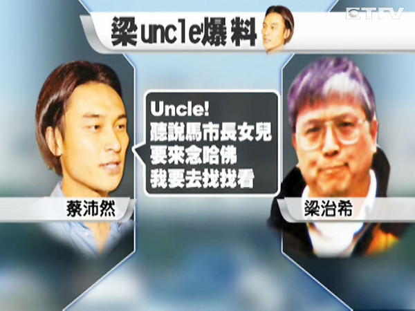 蔡沛然父親蔡龍的老友梁治希爆料,蔡進入哈佛大學前,曾跟在美國照顧他多年的梁治希說,“Uncle,聽說馬英九(臺北)市長的女兒要來念哈佛,我要去找找看!”最后蔡甚至為了馬唯中,與原本的女友分手。