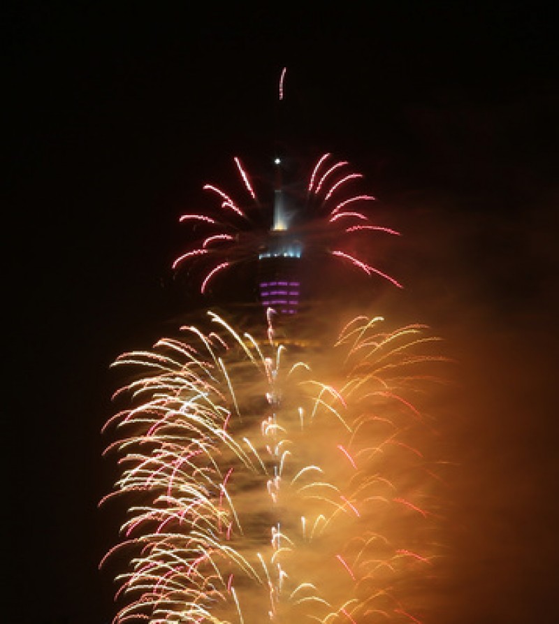 2014臺(tái)北101跨年煙火秀百花齊放、火樹銀花。(組圖)