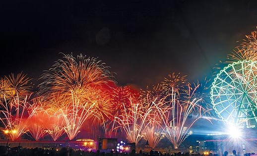 高雄義大世界跨年煙火璀璨,照亮夜空、氣勢磅礡。(臺媒圖)