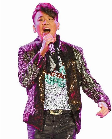 陶喆昨穿特別訂制的「愛的T-Shirt」獻唱。(臺媒圖)