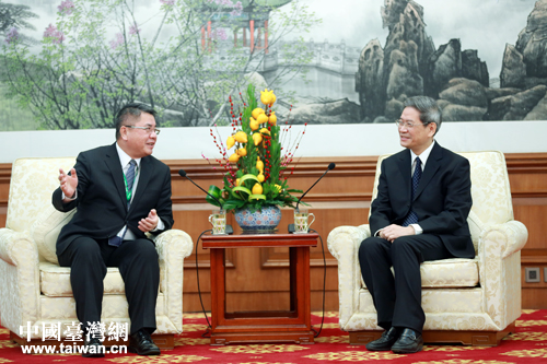 1月10日, 中共中央臺辦、國務院臺辦主任張志軍在北京會見了東莞臺商子弟學校葉宏燈董事長率領的畢業班學生“北京文化之旅”參訪團一行。(中國臺灣網 于斯文 攝)