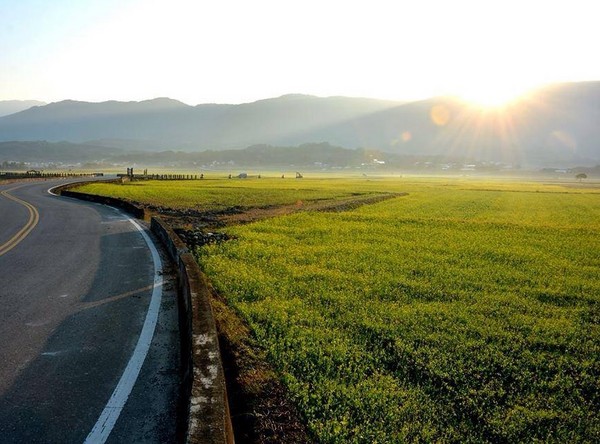 臺東縱谷地區油菜花盛開,大片花田金黃耀眼。(臺媒圖)