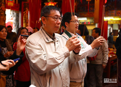 柯文哲今天前往松山慈佑宮參拜,并稱自己是來懺悔的。(圖片來源:臺灣《中時電子報》)