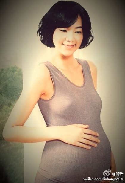 阿雅去年愚人節在微博貼搞笑挺肚照。翻攝網絡
