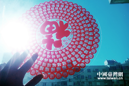 親手貼上窗花,喜慶的顏色帶來開心和幸福。(中國臺灣網 劉承思 攝)