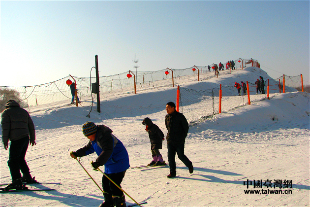 冰場另一側,積雪堆成了小型滑雪場。(中國臺灣網 馬迪 攝)