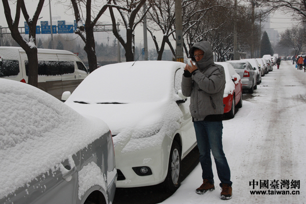 行人在興奮地拍攝雪景。(中國臺灣網 王文英攝)