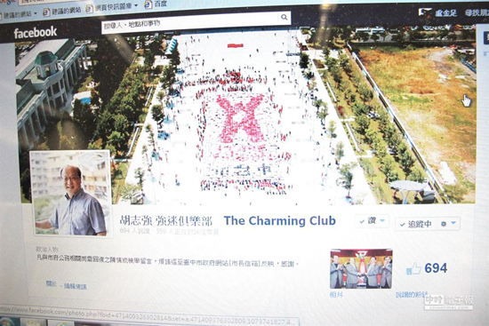 臺中市長胡志強的臉書開張,吸引網友加入“強迷俱樂部”。圖片來源:臺灣《中時電子報》