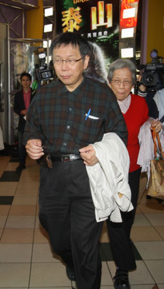 臺大醫師柯文哲(前)17日前往臺北微風廣場國賓影城觀賞電影《大稻埕》。(臺媒圖)