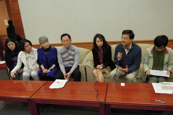 臺(tái)灣同性戀團(tuán)體拜會(huì)國民黨“立委”丁守中(左四)。(臺(tái)媒圖)