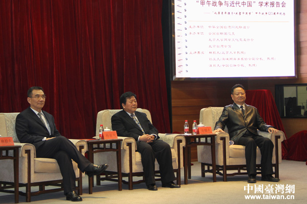 中華全國臺(tái)灣同胞聯(lián)誼會(huì)于2月28日下午在北京臺(tái)灣會(huì)館舉辦“甲午戰(zhàn)爭與近代中國”學(xué)術(shù)報(bào)告會(huì)。圖為三位主講嘉賓。(中國臺(tái)灣網(wǎng) 高斯斯 攝)