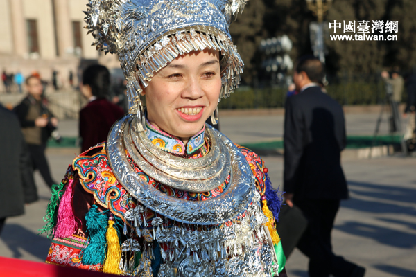 少數(shù)民族代表著民族服裝參會。(中國臺灣網(wǎng) 王思羽 攝)