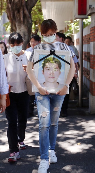 洪仲丘的姐姐抱著弟弟洪仲丘的遺照,難忍不舍。(圖片來自臺(tái)媒)