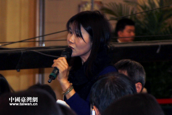 臺灣《旺報》記者在新聞發布會上針對兩岸環保合作相關問題提問。(中國臺灣網 高斯斯 攝)