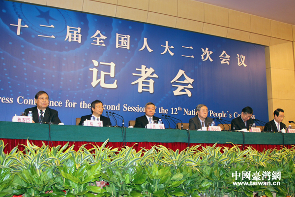 全國人大二次會議新聞中心11日上午舉行記者會。中國人民銀行行長周小川,中國銀行業監督管理委員會主席尚福林,中國證券監督管理委員會主席肖鋼,中國保險監督管理委員會主席項俊波,中國人民銀行副行長、國家外匯管理局局長易綱五位嘉賓就“金融改革與發展”的相關問題回答了中外記者的提問。(中國臺灣網 高斯斯 攝)