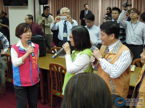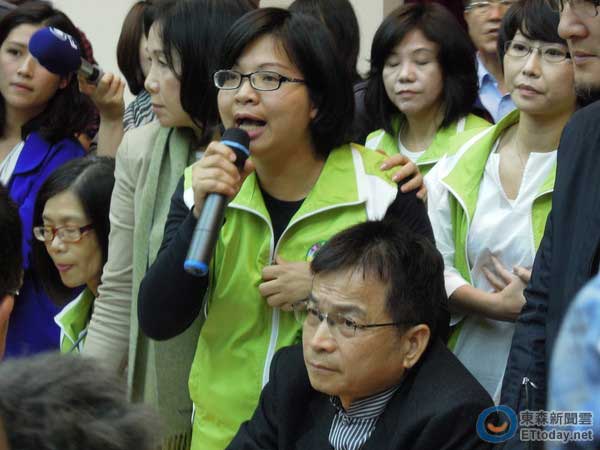 中午時分,“財政委員會召集委員”、國民黨“立委”賴士葆一結(jié)束上午會議,就被民進黨“立委”團團包圍,民進黨“立委”林淑芬還把賴士葆“擠”出主席臺。國民黨要求民進黨讓他們開會,民進黨則批只有國民黨借得到會議室,雙方互不相讓,在主席臺僵持超過30分鐘。