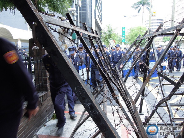 “立法院”周遭仍維持上千警力,警方交班都會引起學生騷動。(圖片來自臺媒)