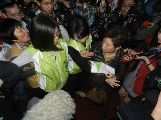 中國臺灣網4月2日消息 據臺灣“中央社”報道,民進黨籍“立委”今天擋在排定審查服貿的會議室外,多位國民黨籍“立委”欲進入開會,一度爆發推擠叫罵,最后仍不得其門而入。