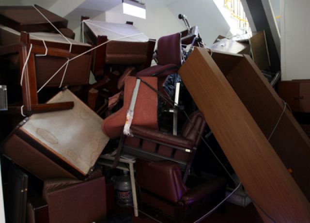 反服貿學生在3月18日沖入“立法院”霸占議場,并“就地取材”,以議場內的椅子等物品筑成“防御工事”,阻擋警察進入,學生20多天來的占領行動,也造成議場內設備、物品嚴重毀損。