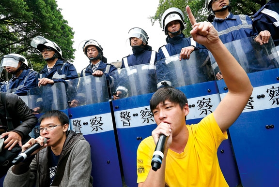 反服貿(mào)學生代表嗆:監(jiān)督條例若過政院版將進擊“總統(tǒng)府”。(臺媒圖)
