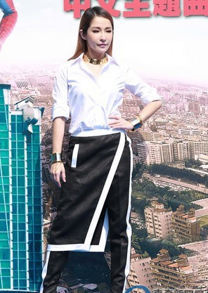 蕭亞軒出席電影《蜘蛛人驚奇再起2:電光之戰(zhàn)》中文主題曲記者會(huì)。(臺媒圖)