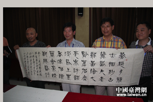 2013年7月,在情系燕趙兩岸文化聯(lián)誼行活動中,陳志聲與大陸文化界人士進行創(chuàng)作交流(中國臺灣網-蕪同攝)