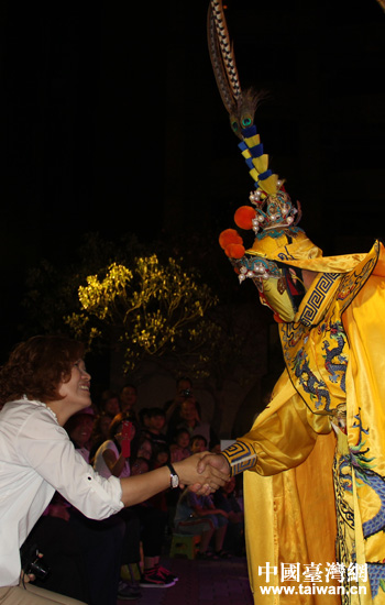 藝術家表演節目變臉并近距離與臺下觀眾互動。(中國臺灣網 高斯斯 攝)