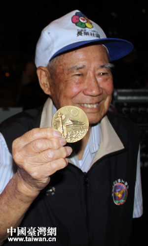 86歲的臺灣老兵向記者展示自己去北京游玩時購買的紀念幣。(中國臺灣網 高斯斯 攝)