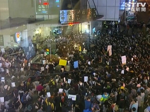 民眾不滿中正一分局驅(qū)離“公投護(hù)臺灣聯(lián)盟”,以“路過”方式包圍警局要求分局長方仰寧下臺道歉。(圖片來源:臺灣“東森新聞網(wǎng)”)