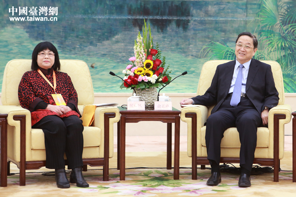 16日上午,全國政協(xié)主席俞正聲在北京會(huì)見了出席“2014海峽兩岸工會(huì)論壇”的臺(tái)灣工會(huì)界代表。圖左為海峽兩岸勞工發(fā)展交流協(xié)會(huì)理事長侯彩鳳。(中國臺(tái)灣網(wǎng) 于斯文 攝)