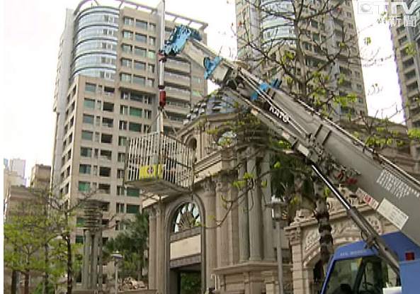 連勝文初選獲勝,反對者帝寶前“坐鐵籠”抗議。(臺媒圖)