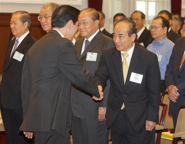 馬英九與與會的王金平握手。(圖片來自臺媒)