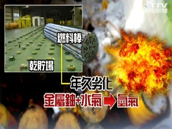 臺(tái)灣發(fā)展核武曝光后,在美方強(qiáng)烈要求下,當(dāng)時(shí)不只反應(yīng)器,所有用來(lái)提煉核武原料的燃料棒也準(zhǔn)備一并運(yùn)回美國(guó)。處理過(guò)程中因部分燃料棒護(hù)套年久劣化,燃料棒中的金屬鈾跟水氣經(jīng)過(guò)擦撞產(chǎn)生氫氣,6度引發(fā)氫爆。雖然之后灌漿封閉實(shí)驗(yàn)室,但氫爆后放射性物質(zhì)已流到核研所下方土地。