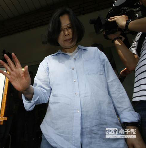 蔡英文簽名后一語不發,掉頭離去。(圖片來源:臺灣《中時電子報》)