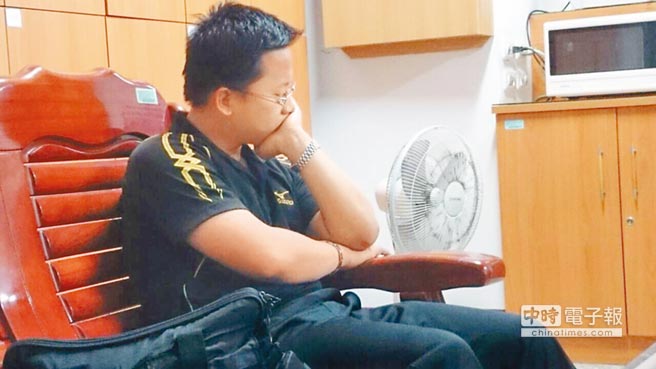 涉嫌襲臀的呂姓中尉在派出所內(nèi)托腮沉思、不發(fā)一語(yǔ)。(圖片來(lái)源:臺(tái)灣《中時(shí)電子報(bào)》)