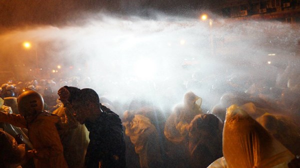 現場約3000位警方于今晨2點47分展開驅離行動,并從5點鐘開始,改以灑水方式進行驅離。(圖片來自臺媒)