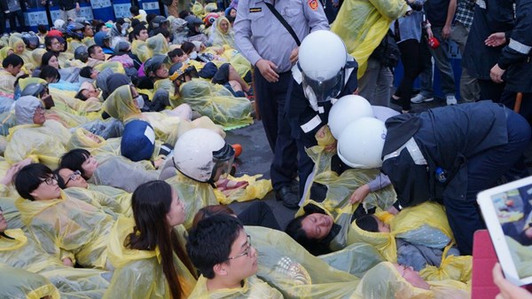 臺灣反核民眾大游行 警方灑水驅離爆沖突(組圖)