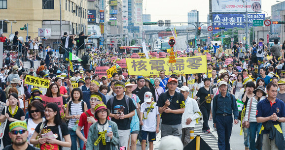 反核四游行27日占領(lǐng)忠孝西路。(臺媒圖)