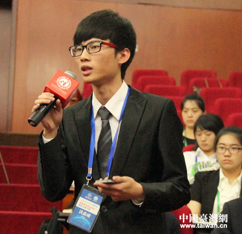 臺灣大學洪鑫誠就兩岸經貿未來如何發展等問題向陳會長提問。(中國臺灣網 高斯斯 攝)