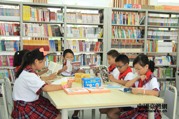 雅安漢源富林三小的“康師傅安康圖書館”中,孩子們沉浸在書籍的海洋中(中國臺灣網(wǎng) 李徽 攝)