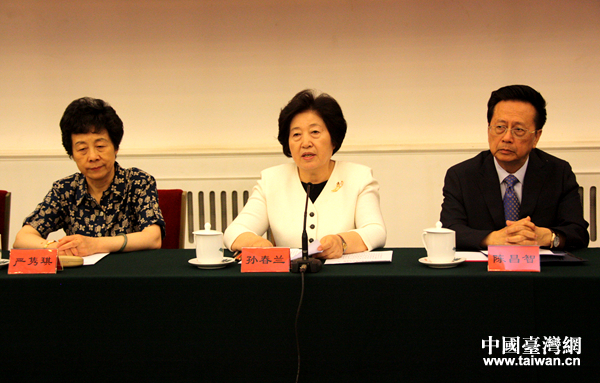中國臺灣網9月21日北京訊(記者 楊永青)中國和平統一促進會九屆一次常務理事會議21日在京召開。中共中央政治局委員、中央統戰部部長、中國和平統一促進會執行副會長孫春蘭強調,要高舉愛國主義偉大旗幟,廣泛團結海內外各界人士,開創中國和平統一促進會工作新局面,為兩岸關系和平發展和實現中華民族偉大復興中國夢作出新貢獻。