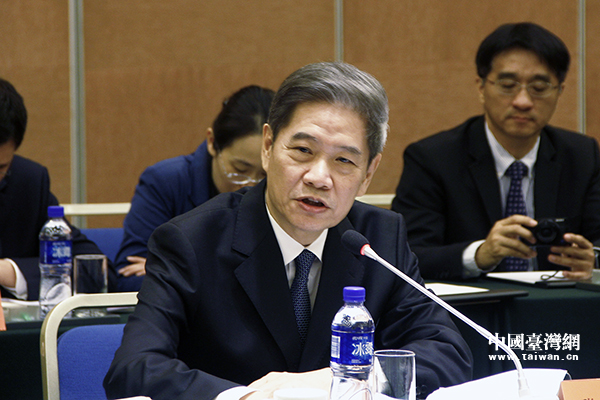 國務院臺辦主任張志軍18日在北京與來訪的臺灣縣市長參訪團舉行座談。(中國臺灣網 李天祺 攝)