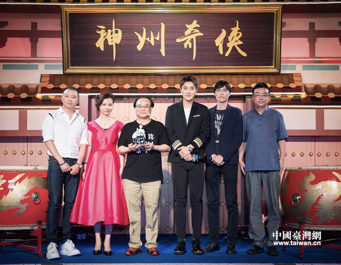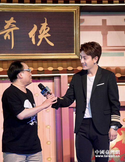 武俠宗師溫瑞安、當紅實力派偶像賈乃亮出席《神州奇俠》影游聯動發布會。(中國臺灣網 高斯斯 攝)